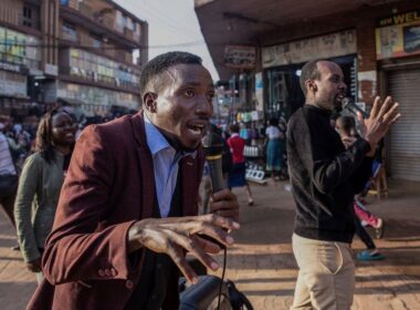 With the aid of a loud speaker, Kayemba Stephen’s voice booms out above the noise of the traffic…