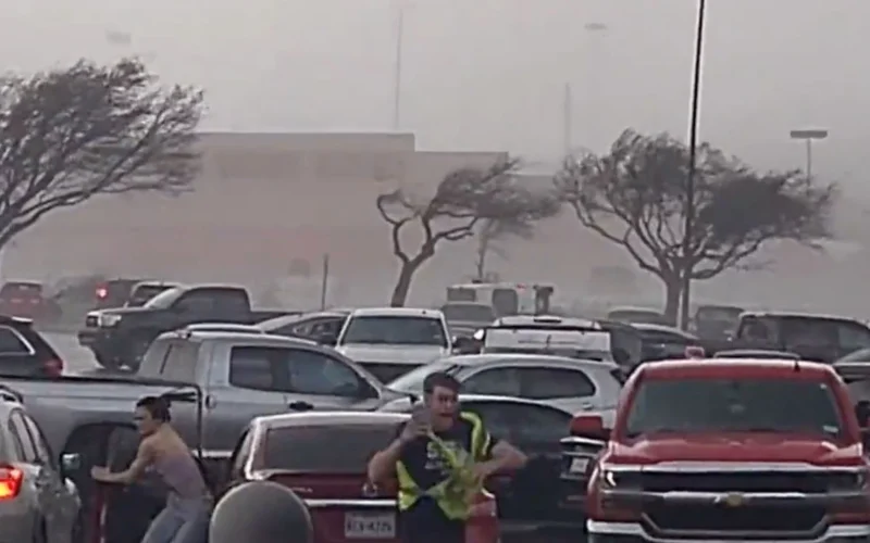 AUSTIN, Texas – A vicious tornado was caught on camera wreaking havoc in a Walmart parking lot in Austin, Texas Monday evening.
