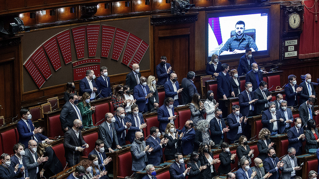 “Kyiv has been through harsh wars throughout its history. After all of the victims and sacrifice it deserves to live in peace just as the same as Rome deserves to live in eternal peace, or any other city in this world,” Zelenskyy told Italian lawmakers. “Unfortunately, this is not the case. The bombs are falling every day, these attacks are happening in Kyiv and around towns in Kyiv. Russian troops around Kyiv are killing and torturing.
